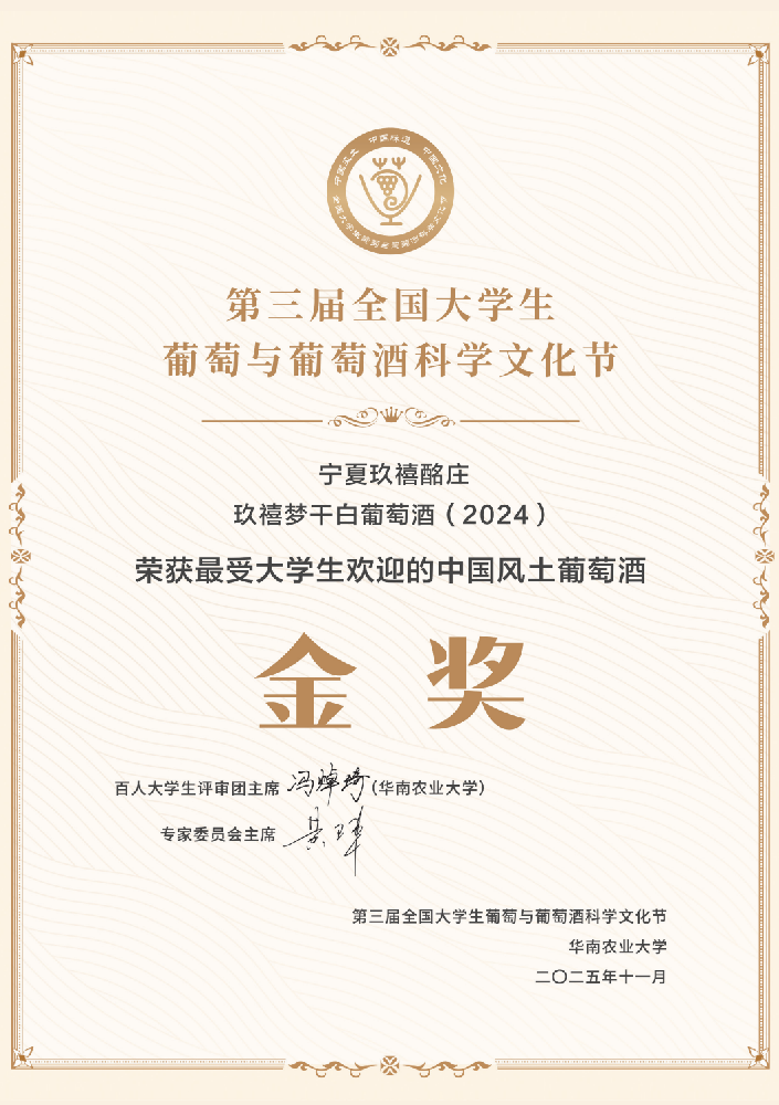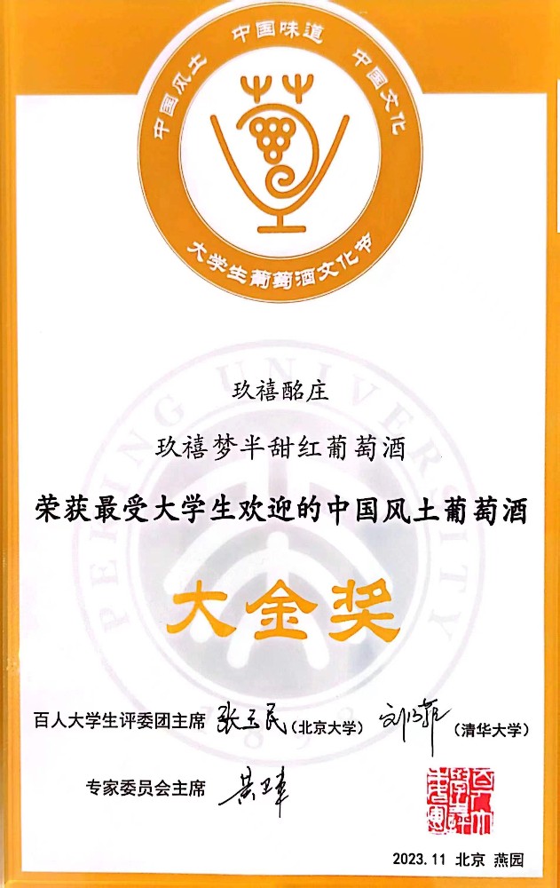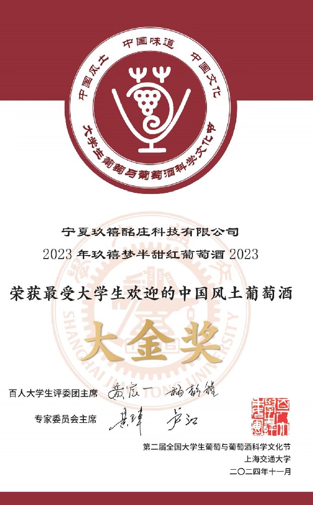 首屆大學(xué)生葡萄酒文化節(jié) 玖禧夢(mèng) 大金獎(jiǎng) -