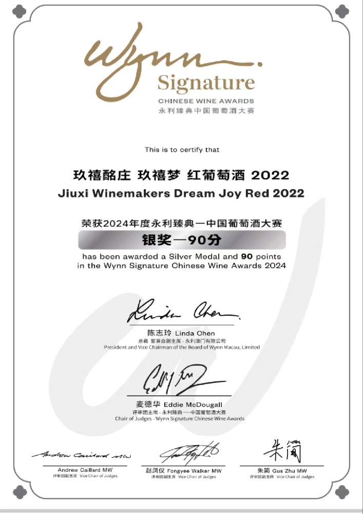 澳門(mén)永利臻典-中國(guó)葡萄酒大賽 玖禧夢(mèng)銀獎(jiǎng) -