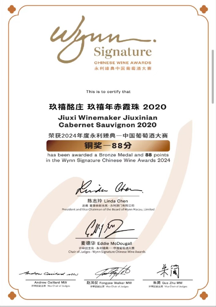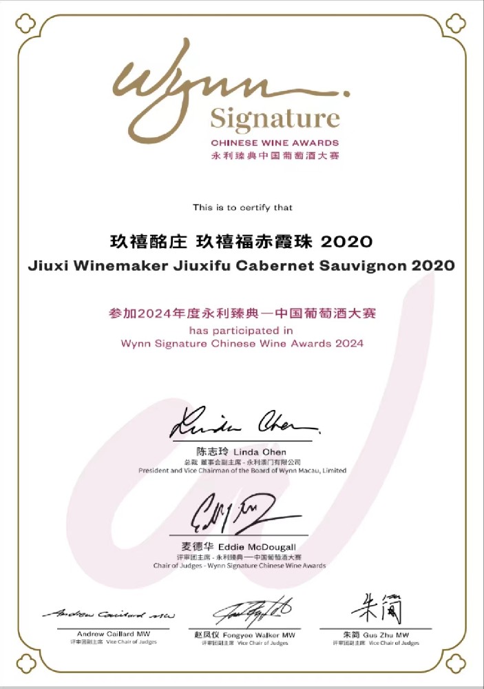 澳門(mén)永利臻典-中國(guó)葡萄酒大賽 玖禧福赤霞珠2020 -